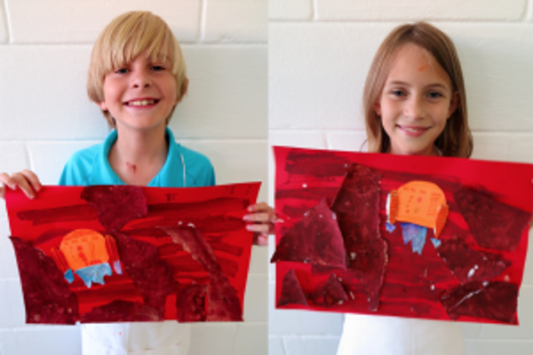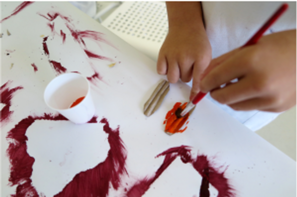 - Black, red, and orange tempera or acrylic paint