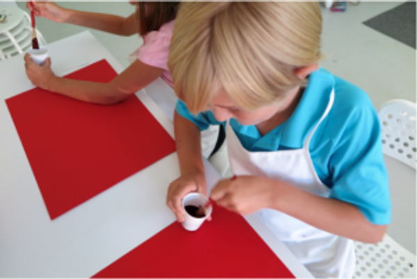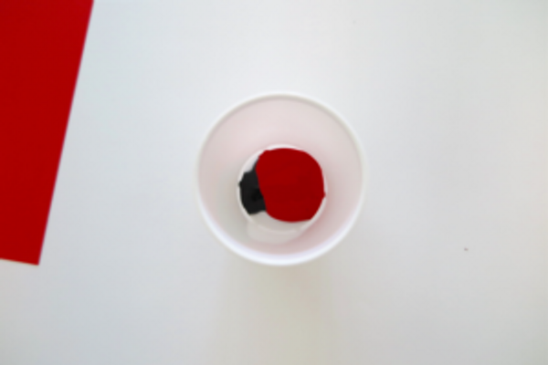 Step 1 – Put black and red paint into a cup. Black paint is very powerful, so use just a tiny bit in comparison to your red paint.