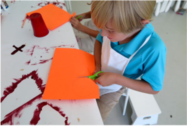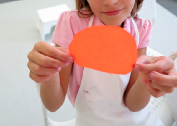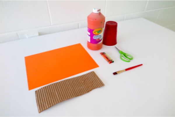To begin Phase 3 of the project, you will need orange construction paper, cardboard scraps, a paintbrush, a cup to trace, crayons, scissors, and orange tempera or acrylic paint.