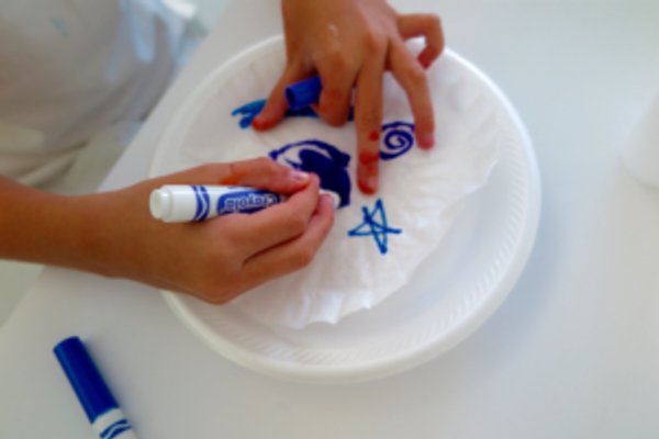Step 2 – Use your markers to create designs on the coffee filter. You do not have to color the entire filter because the water will cause the ink to bleed.